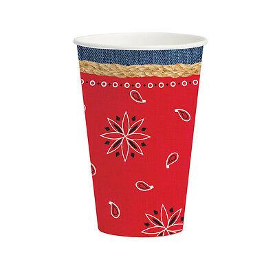 Our Bandana Themed Cups feature a traditional red bandana design printed with a decorative denim style border. These decorative paper cups are constructed from medium weight board stock and can be used for both hot and cold beverages. Ideal for a Wild Wild West themed party, campfire, or cowboy themed party!